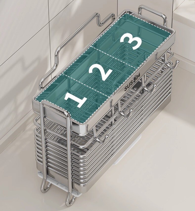 หนึ่งในคุณสมบัติที่โดดเด่นของที่ใส่อุปกรณ์ Three Frames คือการออกแบบช่องสามช่องอันชาญฉลาด การออกแบบนี้แตกต่างจากที่ใส่ของแบบช่องเดียวหลายแบบที่ทำให้ภาชนะปะปนกัน การออกแบบนี้ช่วยให้สามารถจัดหมวดหมู่ได้ คุณสามารถแยกช้อน ส้อม และมีดออกจากกันได้อย่างง่ายดาย หรือแม้แต่แบ่งส่วนให้กับอุปกรณ์พิเศษ เช่น ที่คีบหรือไม้พาย สิ่งนี้ไม่เพียงทำให้การค้นหาเครื่องมือที่คุณต้องการอย่างรวดเร็วง่ายขึ้น แต่ยังช่วยให้เคาน์เตอร์ของคุณดูเป็นระเบียบเรียบร้อยอีกด้วย ที่วางของอื่นๆ อาจมีพื้นที่ขนาดใหญ่เพียงช่องเดียว ซึ่งอาจกลายเป็นเรื่องยุ่งวุ่นวายได้อย่างรวดเร็ว โดยอุปกรณ์จะล้มและพันกัน ที่ใส่อุปกรณ์ Three Frames พร้อมการจัดวางที่คิดมาอย่างดี ช่วยให้มั่นใจว่าอุปกรณ์แต่ละชิ้นมีตำแหน่งที่กำหนดไว้ ช่วยให้ห้องครัวมีระเบียบและมีประสิทธิภาพมากขึ้น